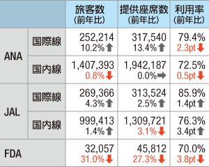 ANAとJAL、FDAが発表した年末年始の利用実績(各社資料からAviation Wire作成)