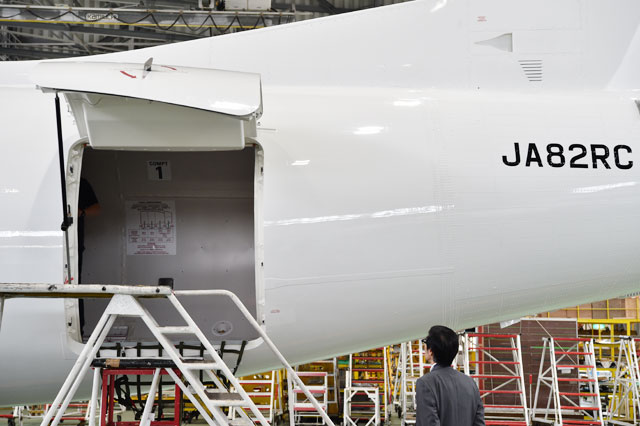 機体後部窓4カ所とドアにあたる部分を貨物室として拡張したRACのQ400CC=16年3月30日 PHOTO: Tadayuki YOSHIKAWA/Aviation Wire