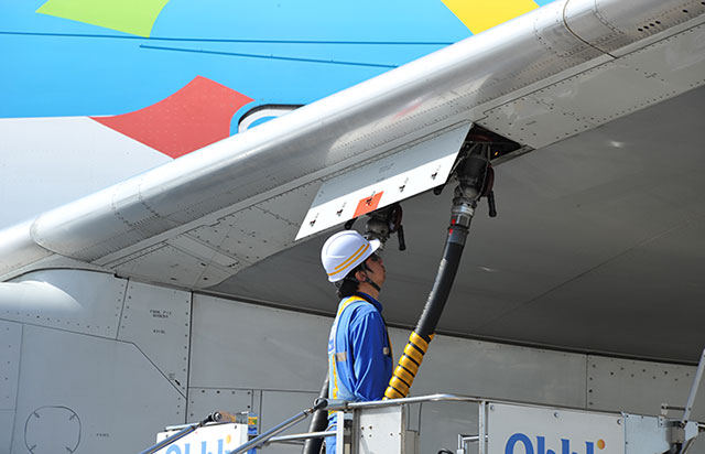 伊丹への飛行に向けピース★ジェットに燃料を給油するスタッフ=16年4月15日 PHOTO: Yusuke KOHASE/Aviation Wire