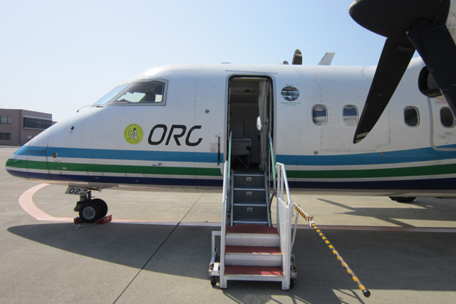 乗降口に「国境の島」デカールを貼ったORCのDHC-8(同社提供)