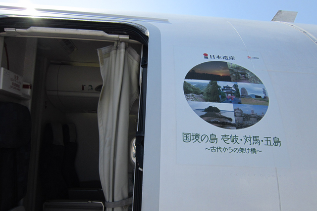 長崎のオリエンタルエアブリッジ(ORC、NGK)は、文化庁が認定する日本遺産に昨年登録された「国境の島 壱岐・対馬・五島 -古代からの架け橋-」をPRするため、乗降口にデカールを貼って4月30日から運航している。