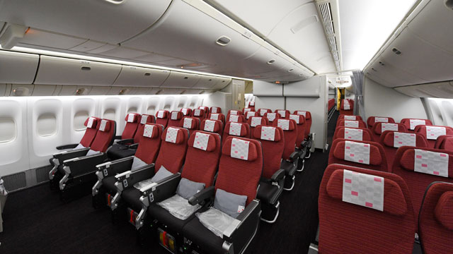 2-4-2席配列を取り入れたJALスカイスイート777のプレミアムエコノミークラス=16年6月10日 PHOTO: Tadayuki YOSHIKAWA/Aviation Wire
