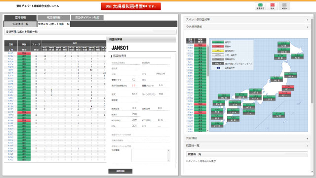 導入後は、空港が入力した被害状況などをシステムを利用して把握。航空機からの残燃料などのデータと照らし合わせて、着陸できる空港を選ぶ。