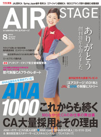 そして、毎年8月号は[エアステージ]創刊号ということで、[エアステージ]31年の歴史とともにJALとANAの制服ヒストリーを振り返る。読者プレゼントもANAの国内線航空券をはじめ、各航空会社のオリジナルグッズやAOKIのリクルートスーツなど豪華プレゼントが満載」