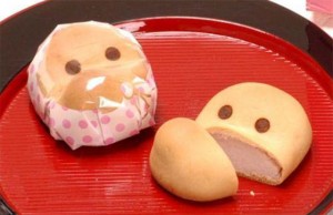 FDAが小牧発出雲行きJH413便の機内で配る「どじょう掬いまんじゅう いちご」(同社資料から)