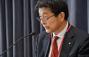16年4-6月期決算を発表するJALの斉藤専務=16年7月29日 PHOTO: Tadayuki YOSHIKAWA/Aviation Wire