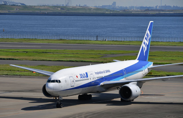 羽田に到着するANAの777初号機JA8197=16年7月29日 PHOTO: Tadayuki YOSHIKAWA/Aviation Wire